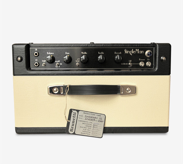 Singleman is the new Brunetti single channel tube combo unit with integral reverb unit. This low power amp has been developed as an easy to use, versatile and adaptable unit to suit a wide range of live or studio situations. There are two different final tube configurations: 6V6 or 6L6 depending on the sound level you prefer. Both are equipped with PowerLimit® technology.